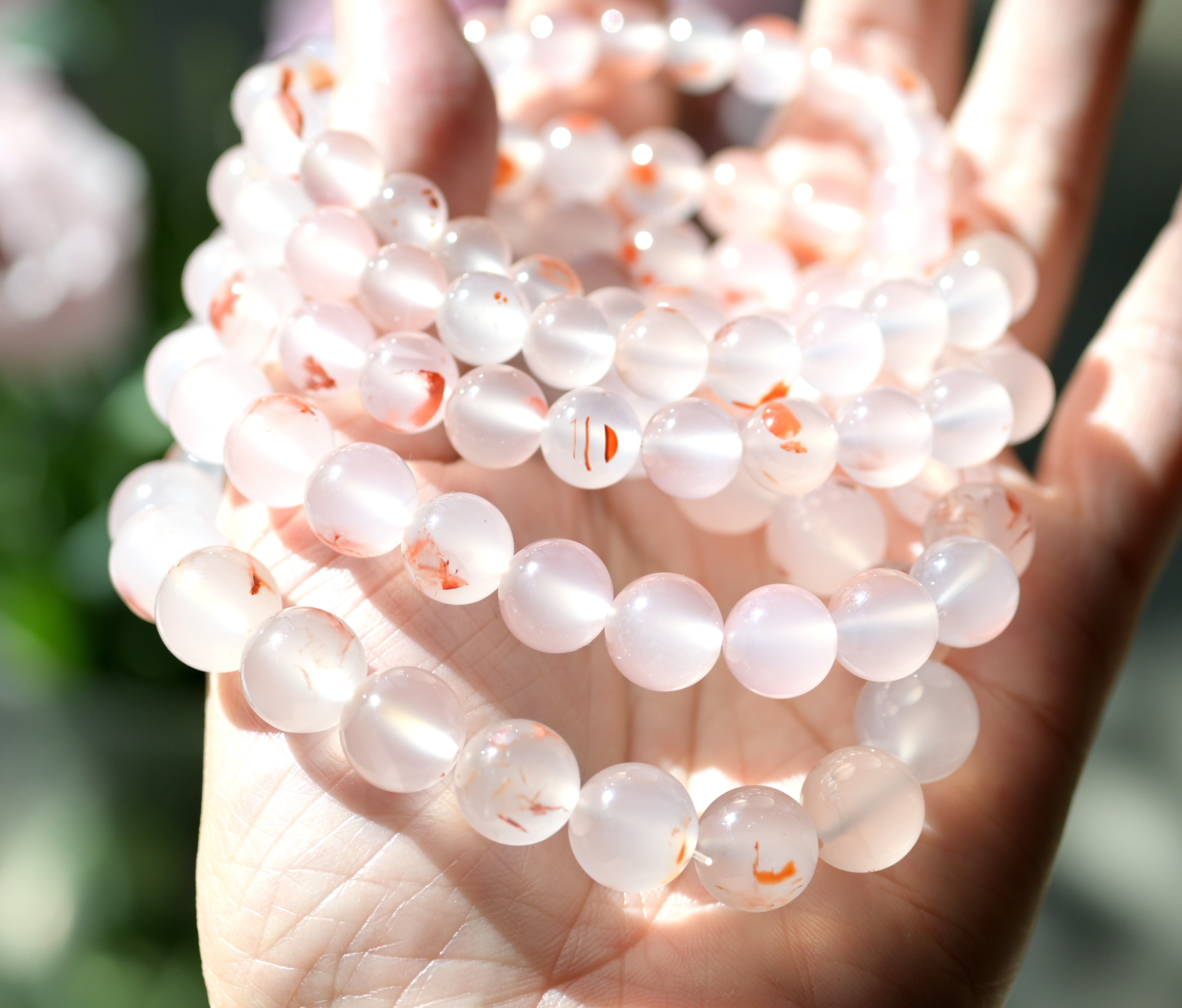 荔枝凍瑪瑙的能量,不是補強推進,偏下三脈輪,主軸不是再推動,而是協助將較為沉重的能量向上提升至穩定平衡