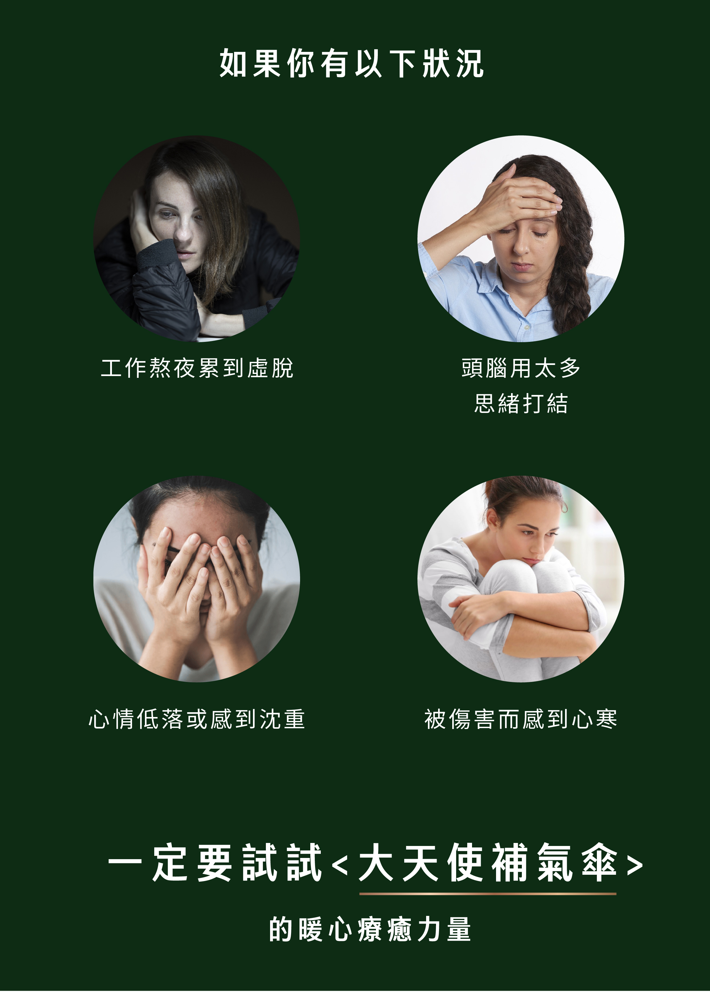 用腦過度思緒打結覺得虛,熬夜工作心情低落覺得冷,疲倦腦霧覺得累....都是使用 大天使補氣傘 最好的時機呦!