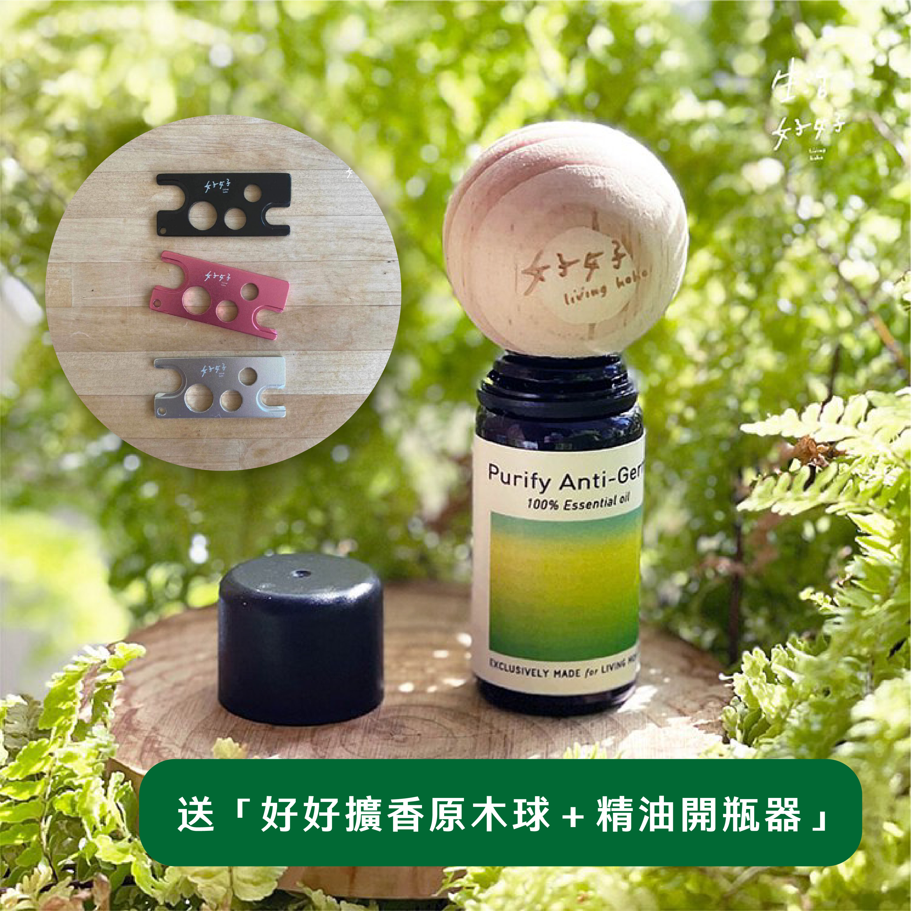 好好擴香原木球+精油開瓶器 在閱讀時,選擇喜歡的香氣,精油擴香球吸附天然純精油的芬芳,讓空間裡充滿愛的事物,享受自我的獨活時光。不管是滾珠瓶、拍拍瓶、精油瓶開啟各種規格的精油瓶都能讓你的纖纖玉指輕巧不費力