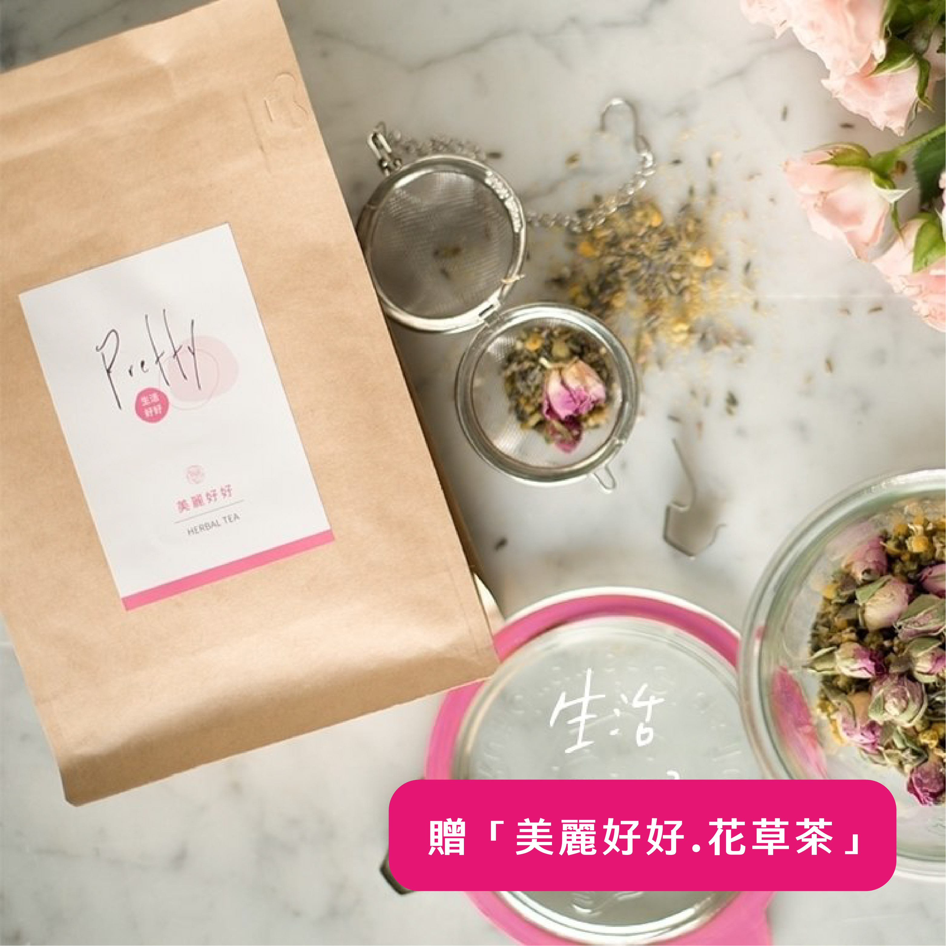 美麗好好.花草茶 用一整朵的大馬士革玫瑰花苞以及一整朵的洋甘菊,讓人恢復好氣色,啜飲一口充滿植物能量的無咖啡因的有機花草茶,讓你由內而外的淨化身心,用愛滋潤『心肝寶貝』