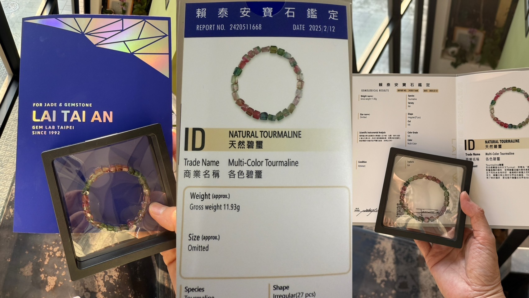 但過了幾個月,她開始懷疑這條碧璽的真假,甚至認為如果是假的,將涉及法律問題。我們與她溝通後,也理解她的擔憂,因此選擇將這條水晶收回,親自送至第三方鑑定。