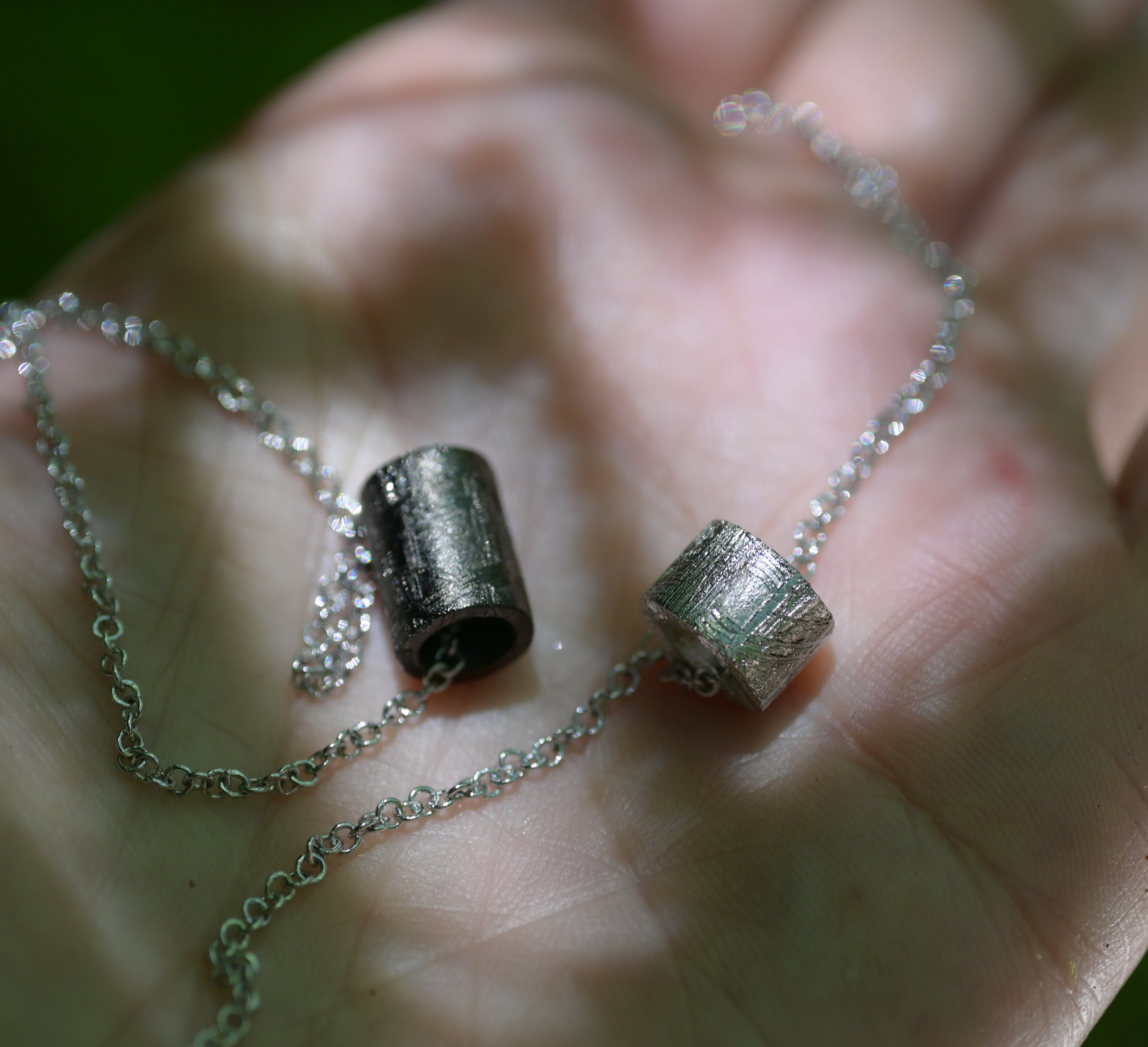 天鐵天孔珠吊墜是由整塊實心天鐵鑽孔而成,呈現簡潔現代的設計風格,無論搭配鈦鋼鍊或各種晶石細鍊都展現出獨特的質感與實用性。