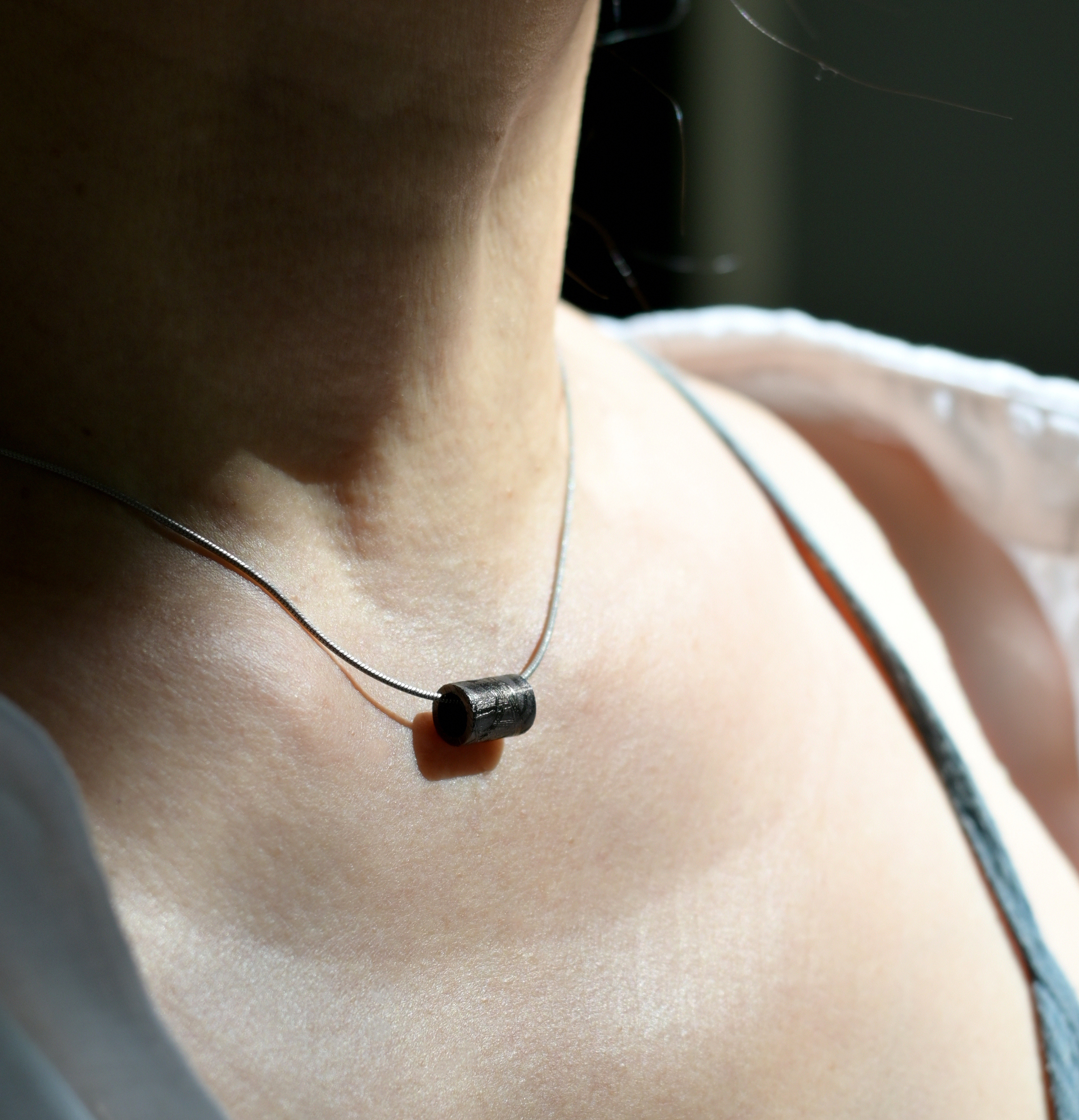 天鐵天孔珠吊墜是由整塊實心天鐵鑽孔而成,呈現簡潔現代的設計風格,無論搭配鈦鋼鍊或各種晶石細鍊都展現出獨特的質感與實用性。