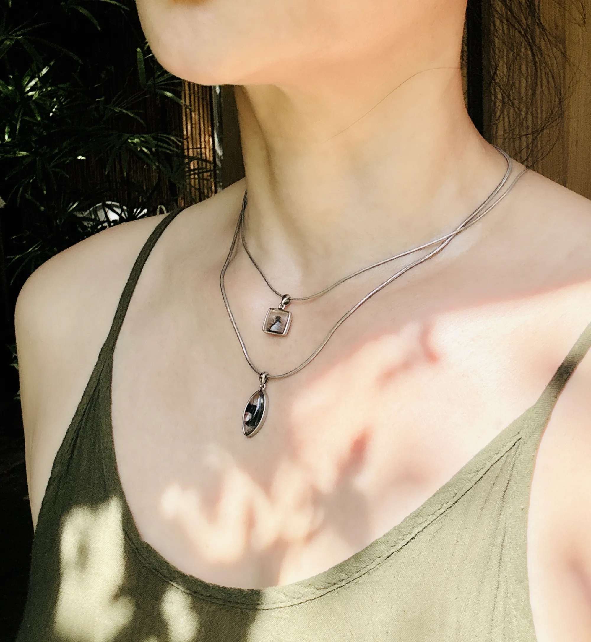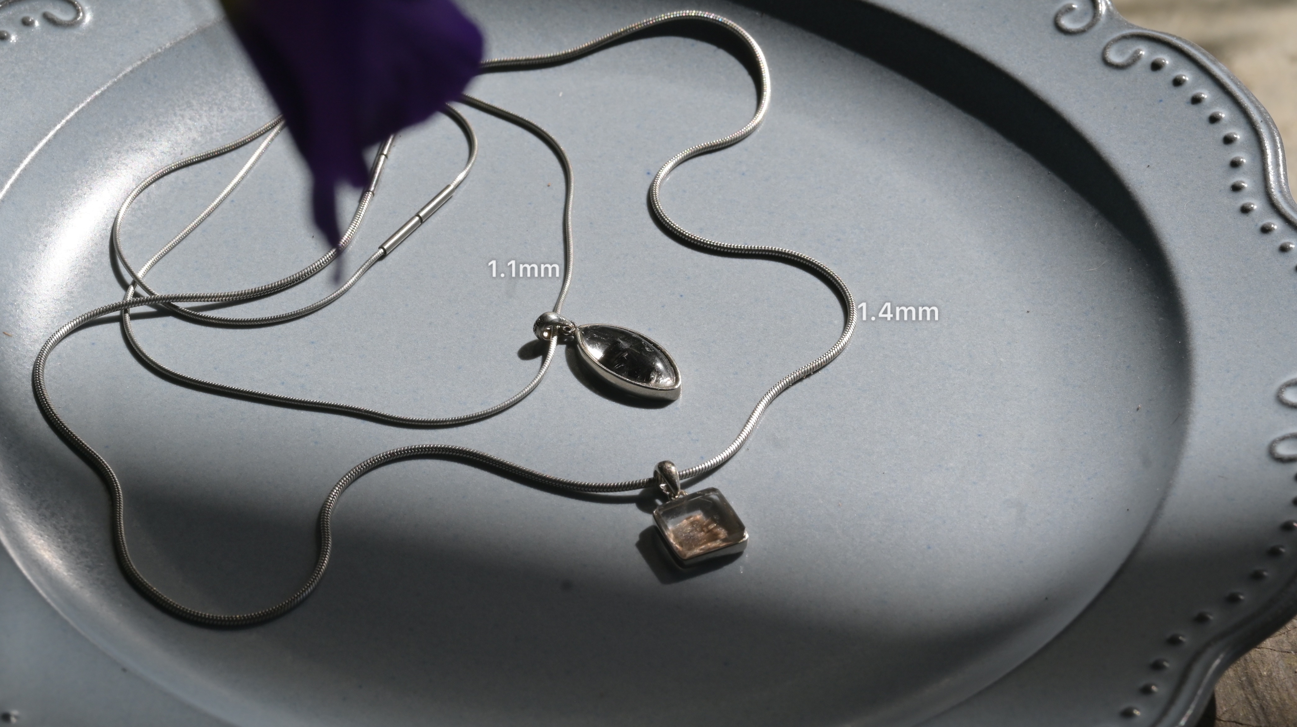 這款設計感與實用兼顧的鈦鋼鍊,除了可讓佩戴者更舒適外,也可踏實而不搶眼襯托出水晶吊墜及佩帶者的質