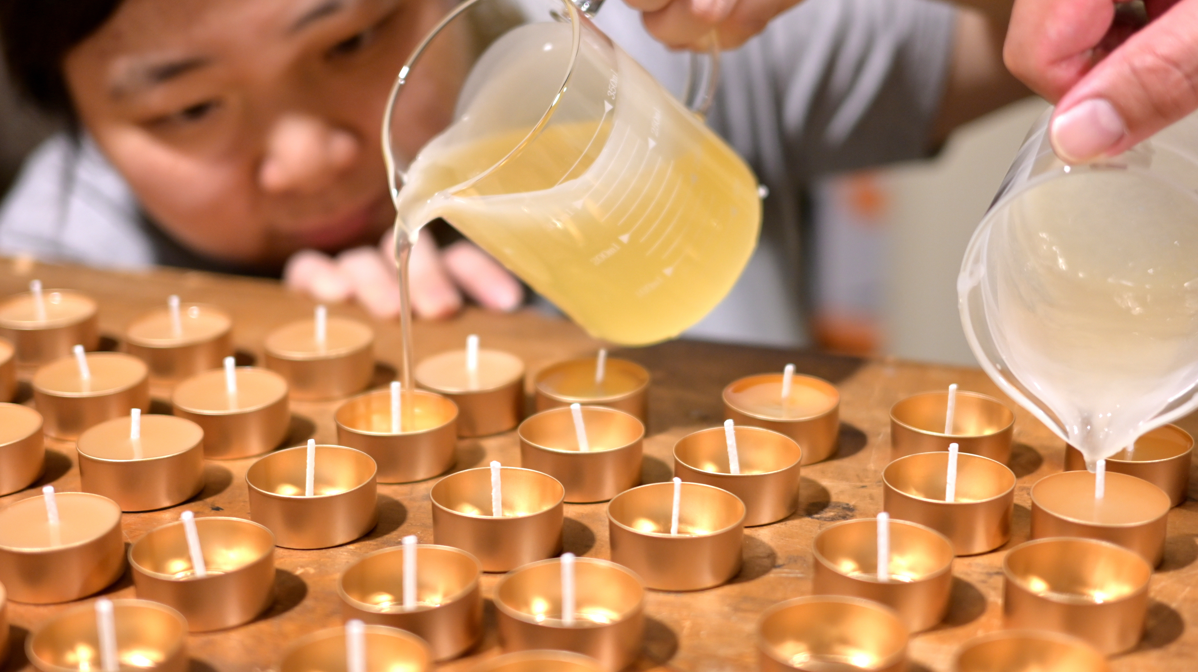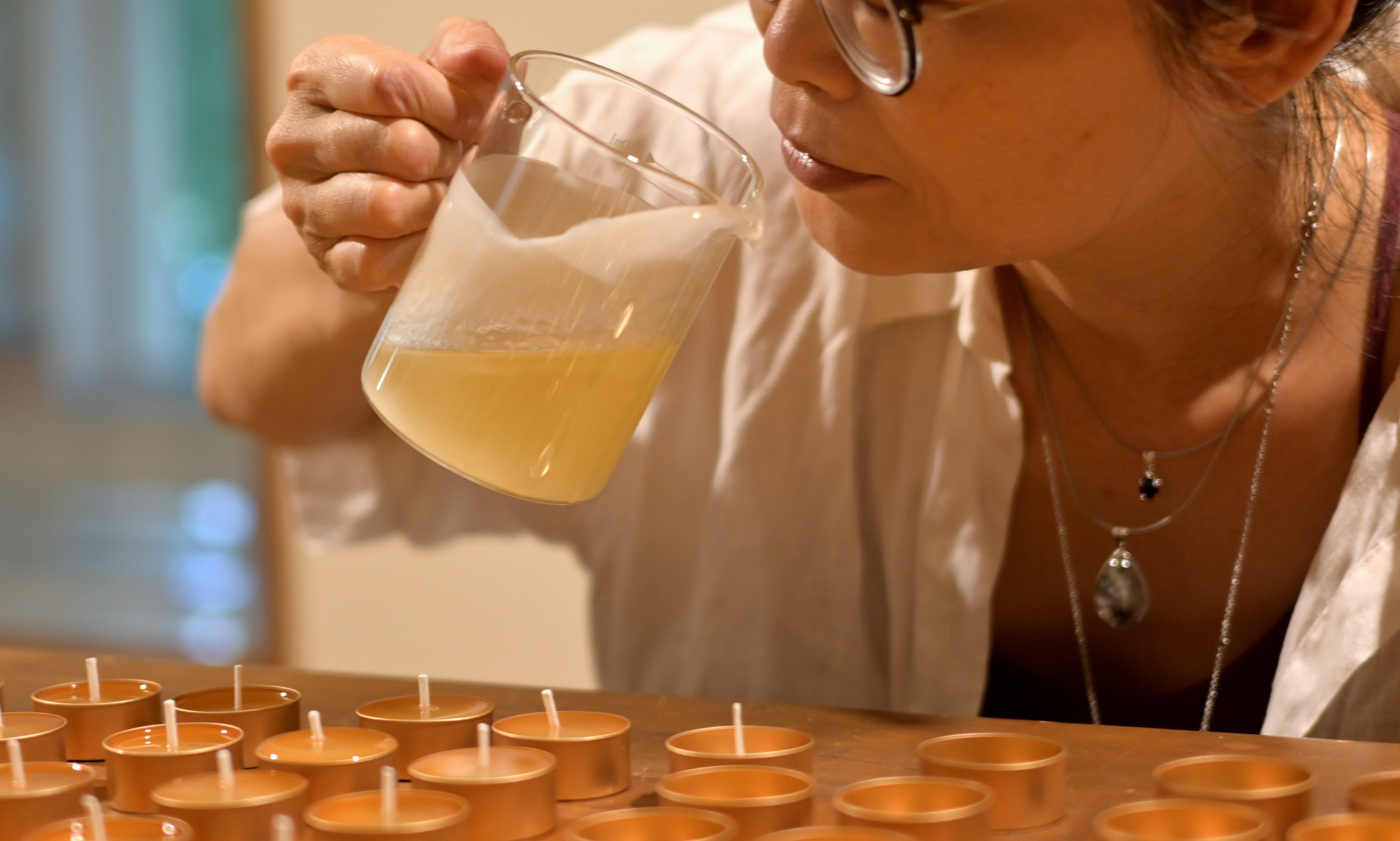 2.蠟燭呈現全液態後再熄滅,這樣能避免只燒到中央的不均勻,也能讓後續使用狀態更好