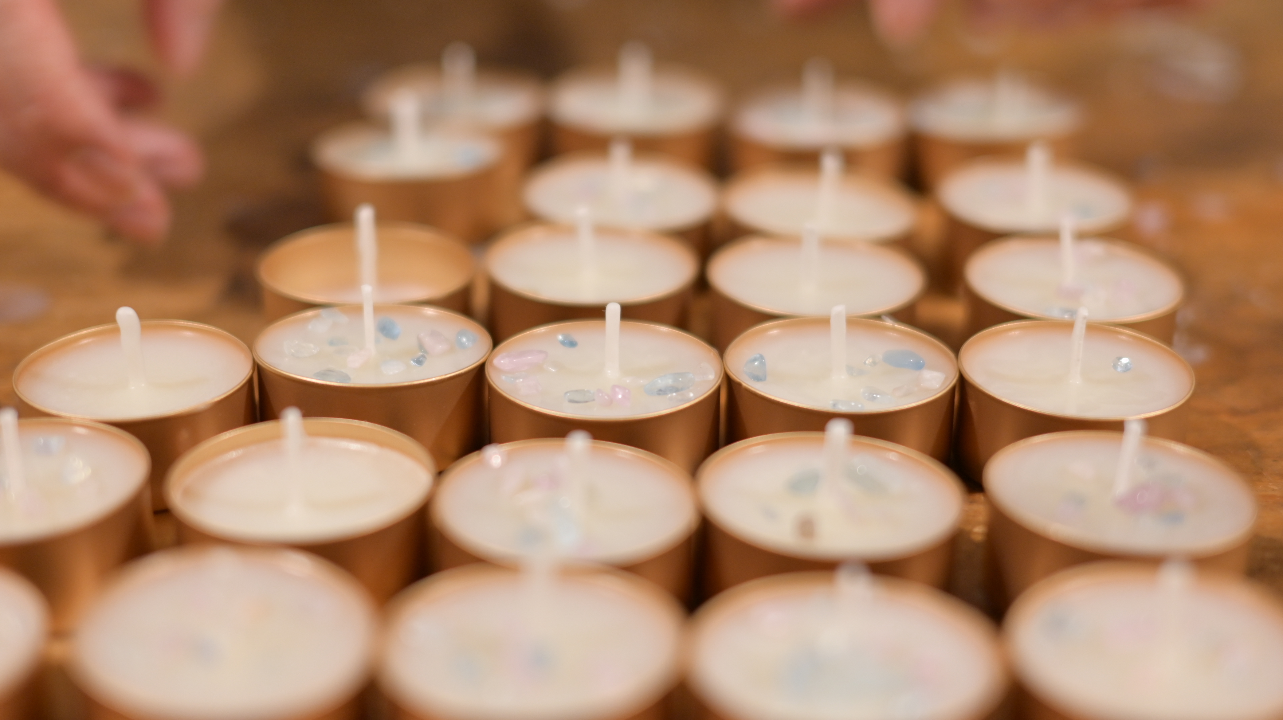 6.在蠟燭尚未完全凝固前不要碰觸搖晃,半凝固時再調整燭芯位置,完全凝固才修剪燭芯