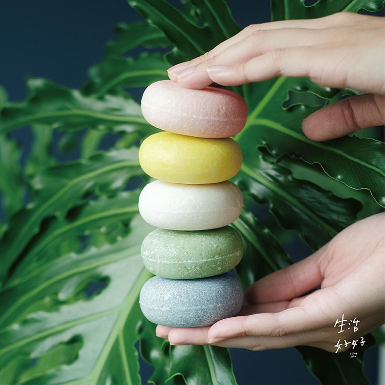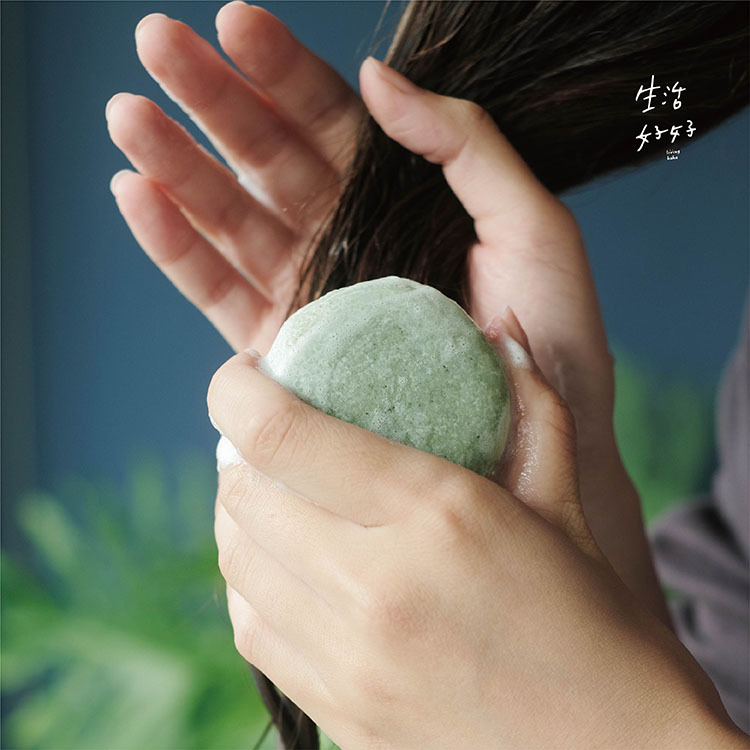 1. 頭髮充分打濕後,將洗髮餅放在頭髮上轉個幾圈,等出現泡沫後即可溫和清潔頭皮頭髮,再以清水沖洗乾淨