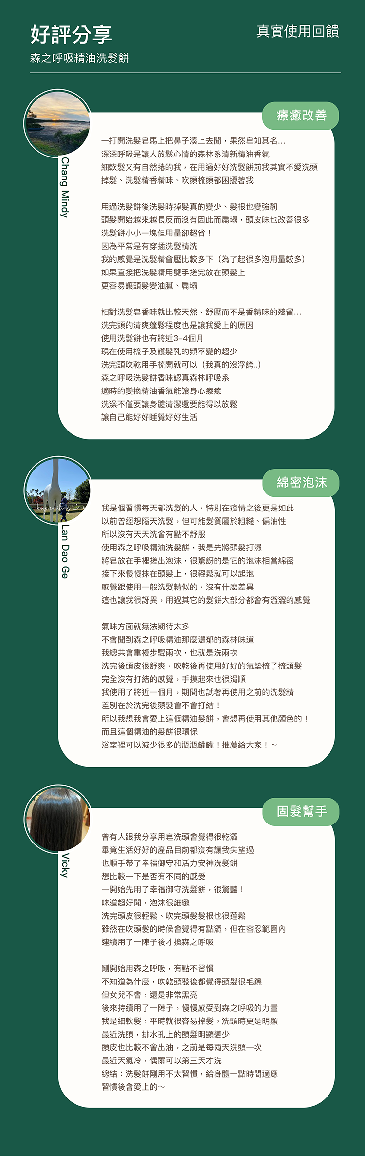 [ 成份 ] Sodium Cocoyl Isethionate(天然椰子油脂肪酸來源的介面活性劑)、荷荷芭油、甘油、純淨水、精油(西伯利亞冷杉、台灣檜木、白玉蘭葉、薑CO2、新喀里多尼亞檀香)、菠菜粉