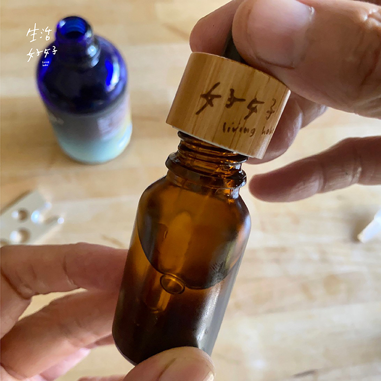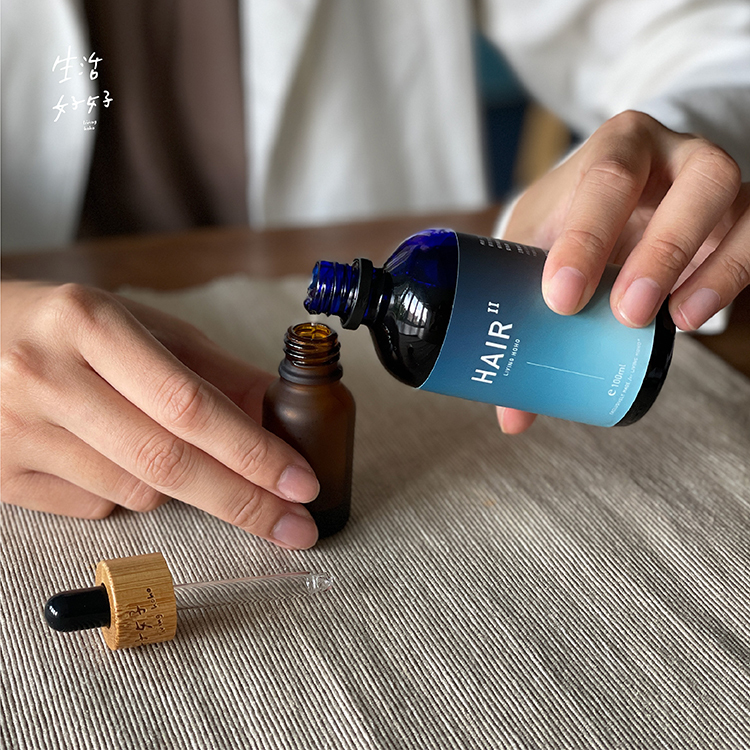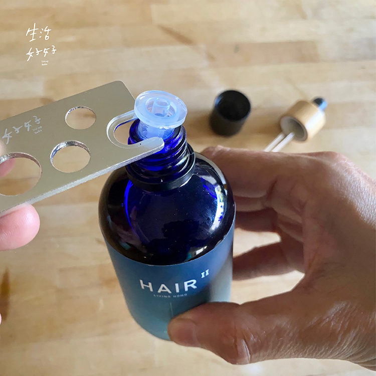1.洗髮前,將烏溜溜.潔淨滋養hair油瓶蓋打開,用精油開瓶器將內瓶塞翹開,倒入好好滴管瓶中10-15ml。