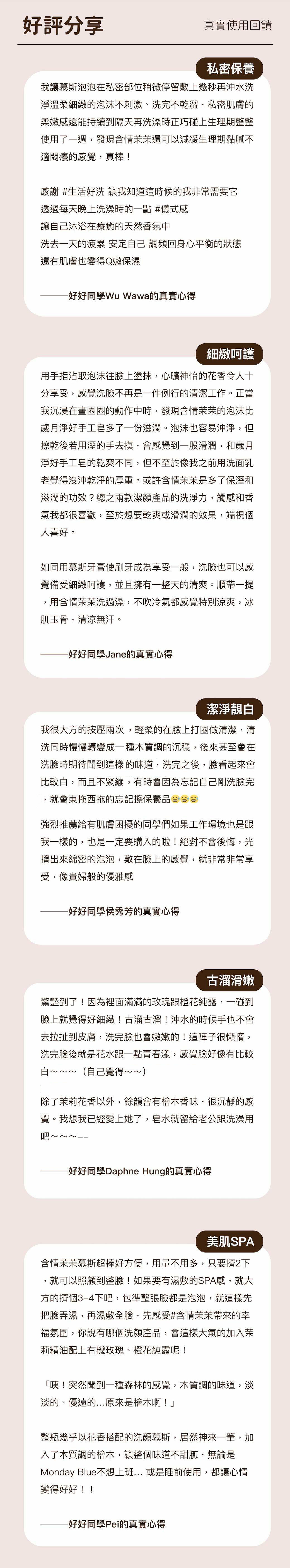 有著 茉莉木質調 舒服的香氣,每次使用就像在幫自己做SPA一樣療癒放鬆感:)