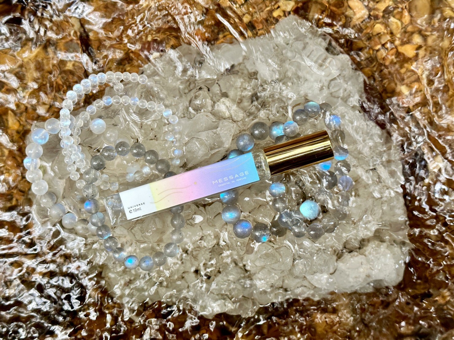 宇宙訊息香水的香氣能協助創造豐盛財富,提升自身包容心與同理心,能使我們以平靜的心接收並感謝身邊所有發生的事情。能提升第7脈輪能量,十分適合使用於對應第8脈輪的極光星空拉長石水晶來淨化,配戴水晶手串時可直接噴灑在手腕,同時提升自己內在及水晶手串的能量。