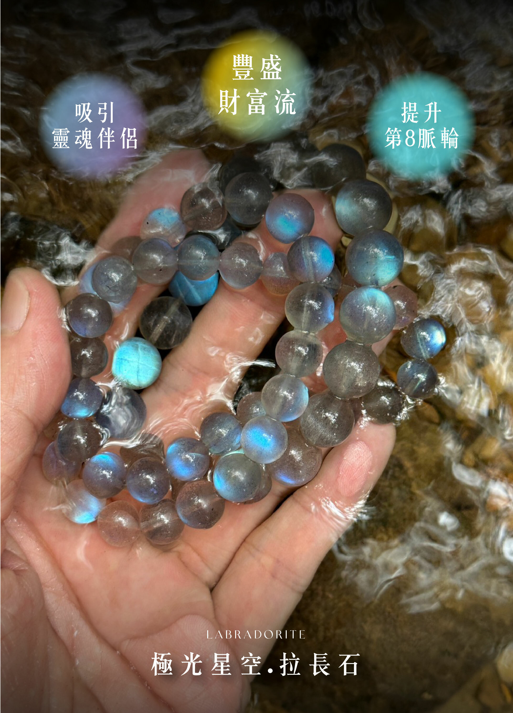 極光星空拉長石能幫助我們更有魅力 自信 創造力,從而吸引「靈魂伴侶.家族」來相聚,也就是我們常說的貴人大大來相助。也因此拉長石能豐盛我們的財富能量流,