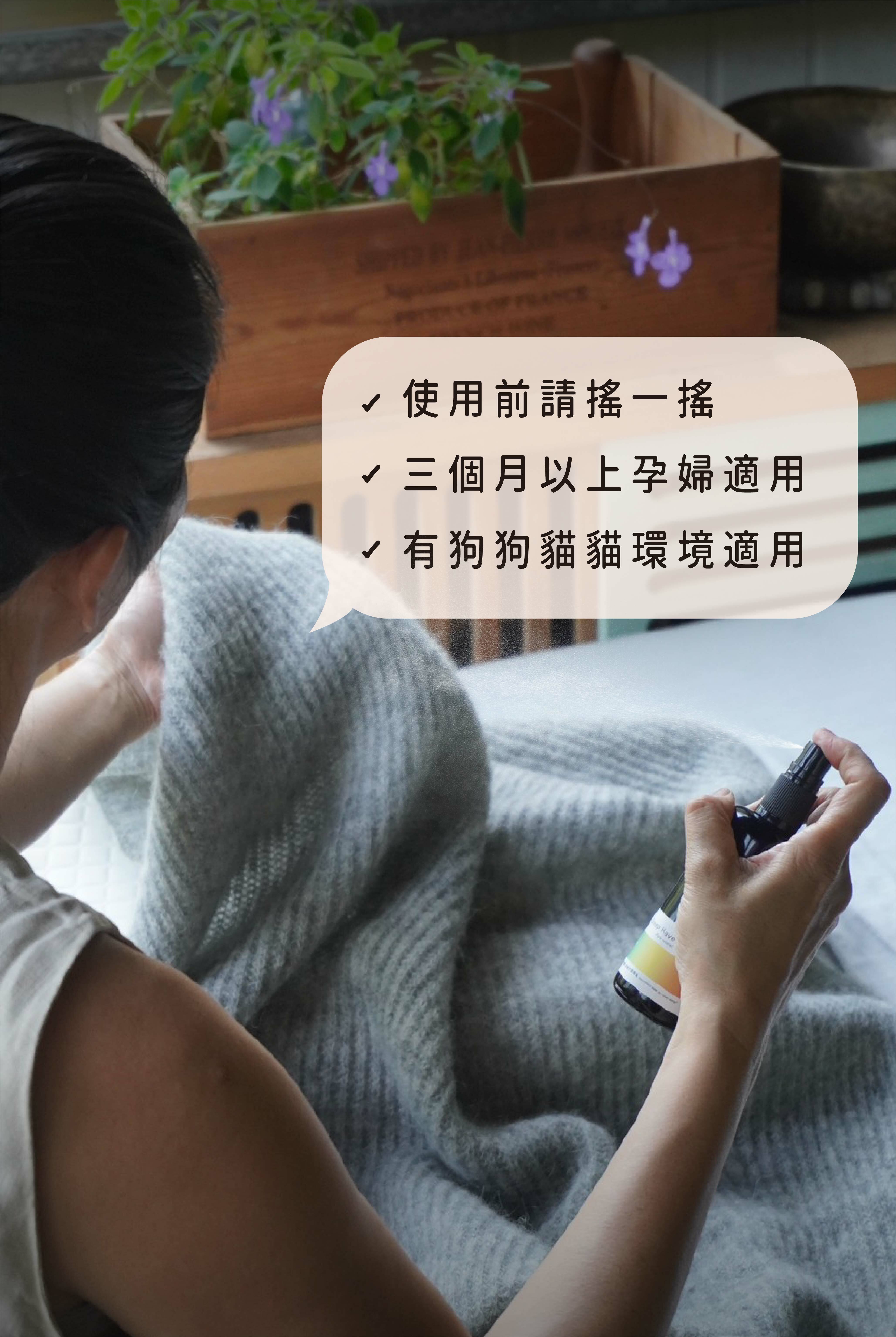 使用前務必先搖一搖! 此為環境噴霧,不適合使用在身體上,避免噴臉部及肌膚上,也請放置在小朋友或狗狗貓貓不容易拿取之處。
