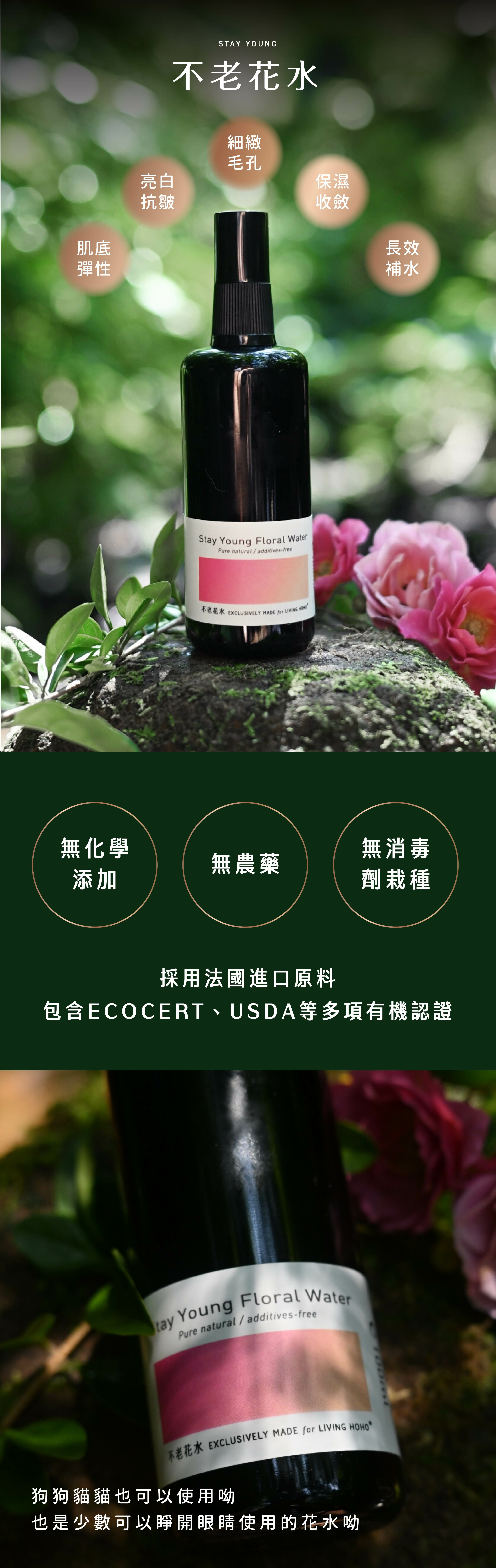 [ 成份 ] 有機純露(橙花、真正薰衣草) (歐盟 Ecocert 有機認證)、有機玫瑰純露(保加利亞Balken biocert有機認證)