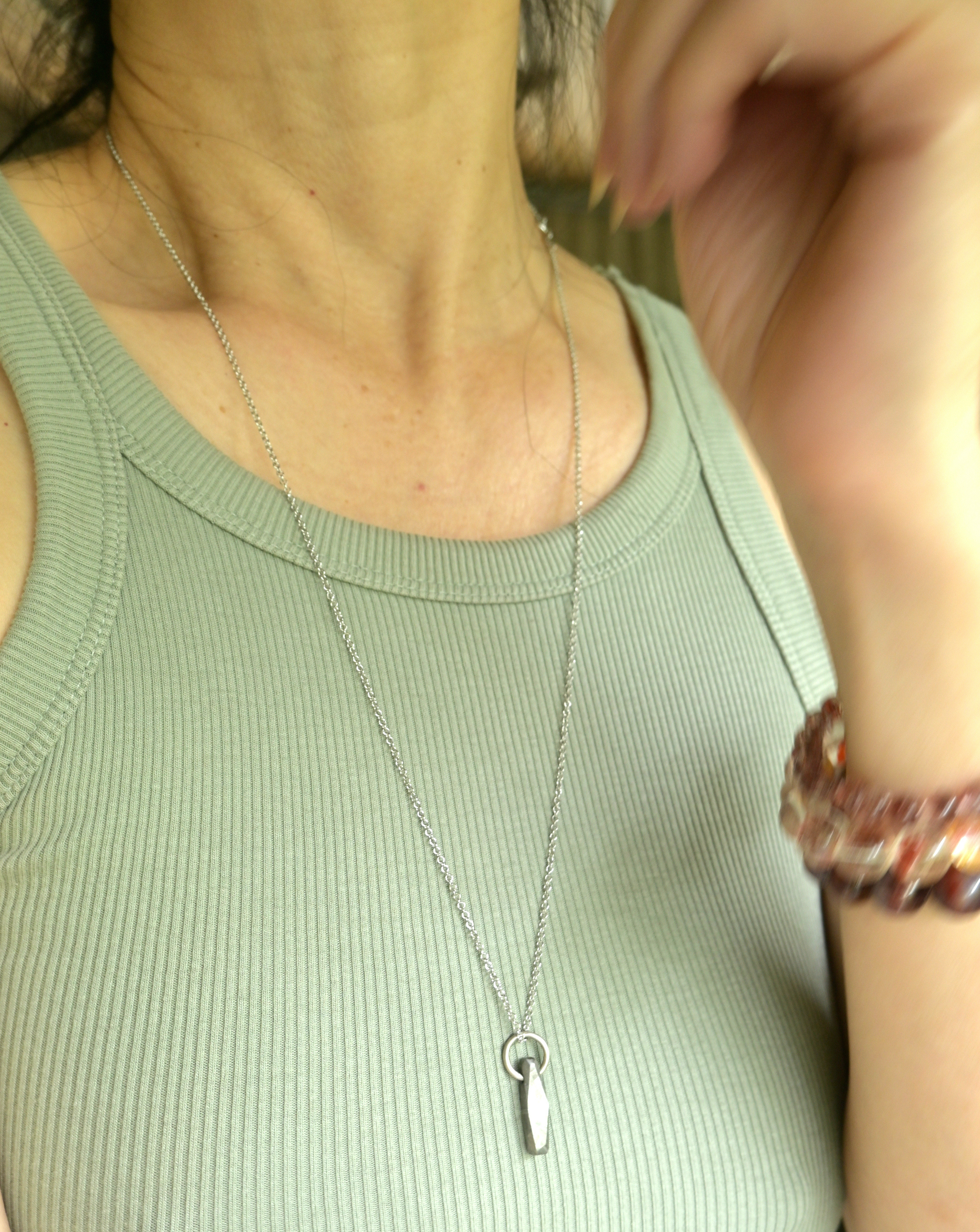 第二個長度約為64cm,較接近上心輪:對於無法讚美肯定自己,覺得自己不會成功沒有價值的人,可以選擇這個長度配戴水晶,提升愛自己的能量