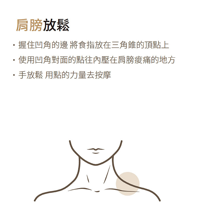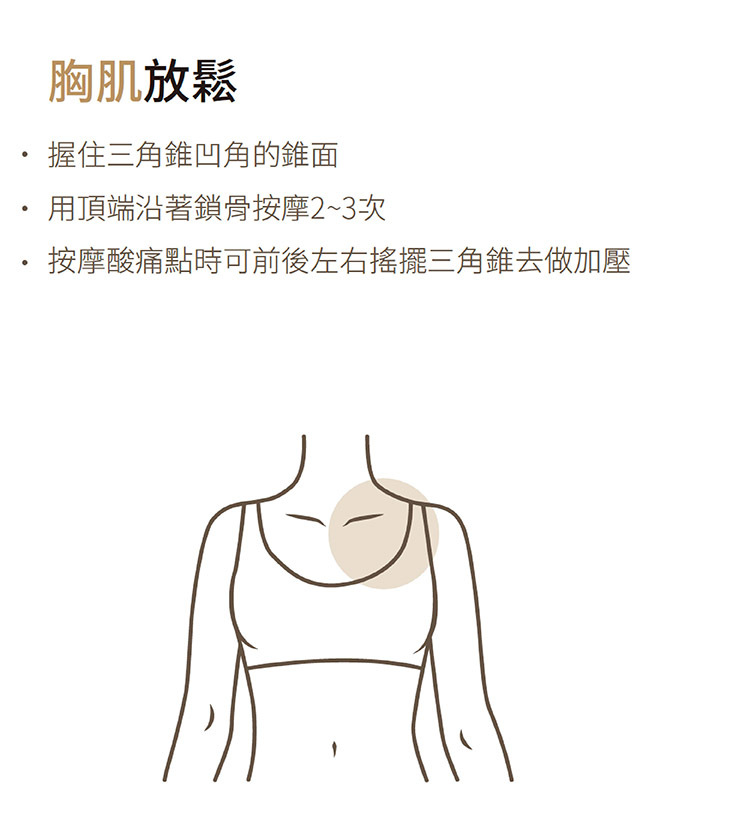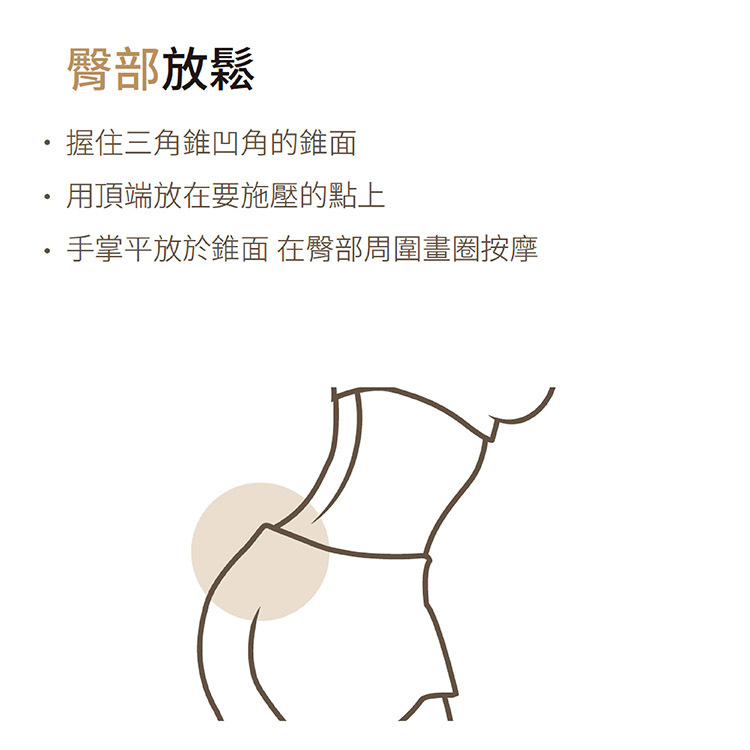 頂部圓角 - 舒緩筋膜單尖角 - 深層按摩雙尖角 - 深層按摩側面- 舒展淺層筋膜