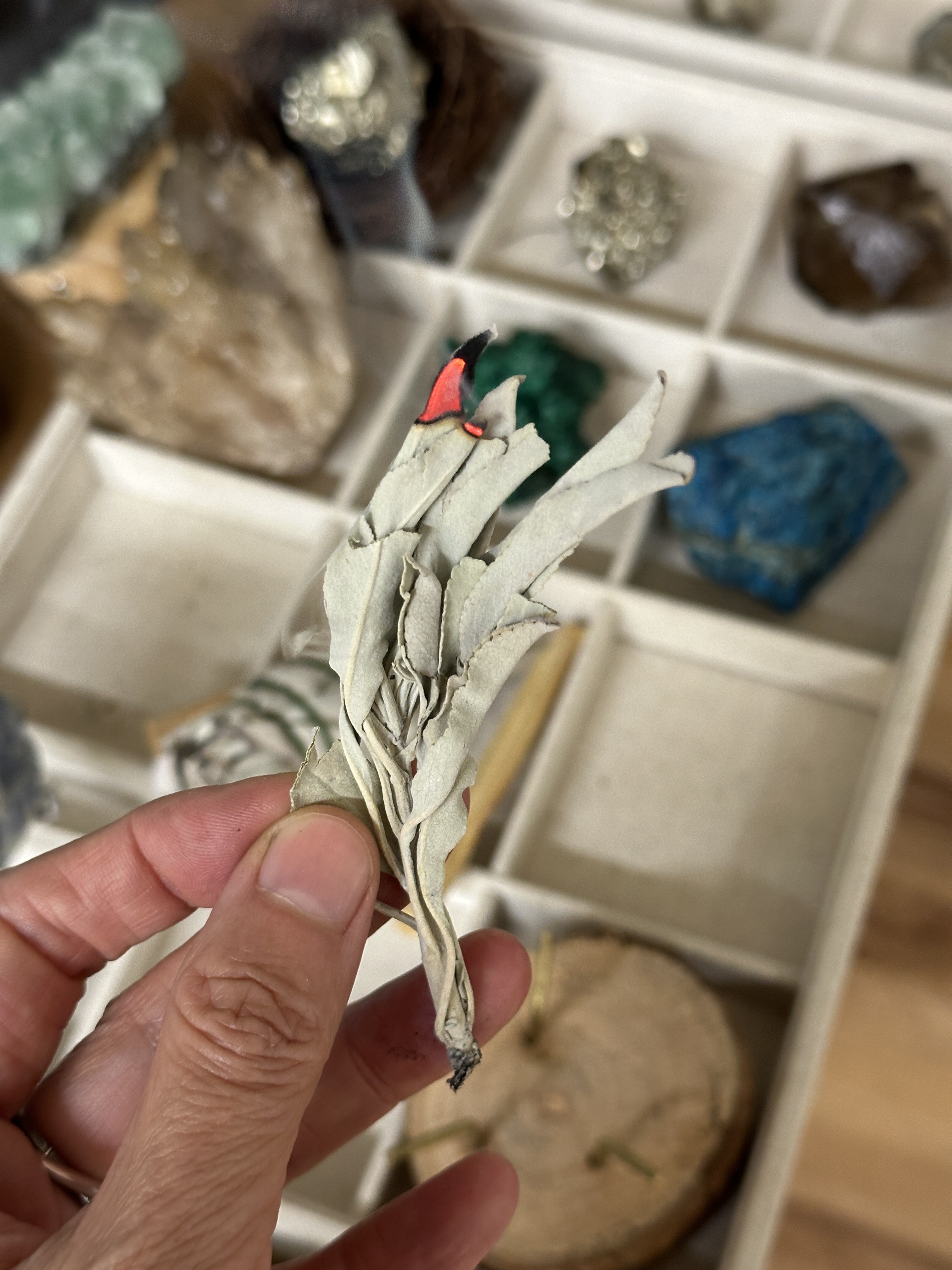 5.若是使用在淨化水晶,讓白色鼠尾草的煙充滿在水晶四周10秒