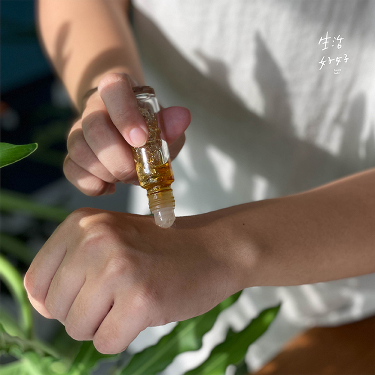 1. 將4ml植物油裝入水晶滾珠瓶中,滴入1-2滴左右的精油,充分混合後塗抹在肌膚按摩即可。
