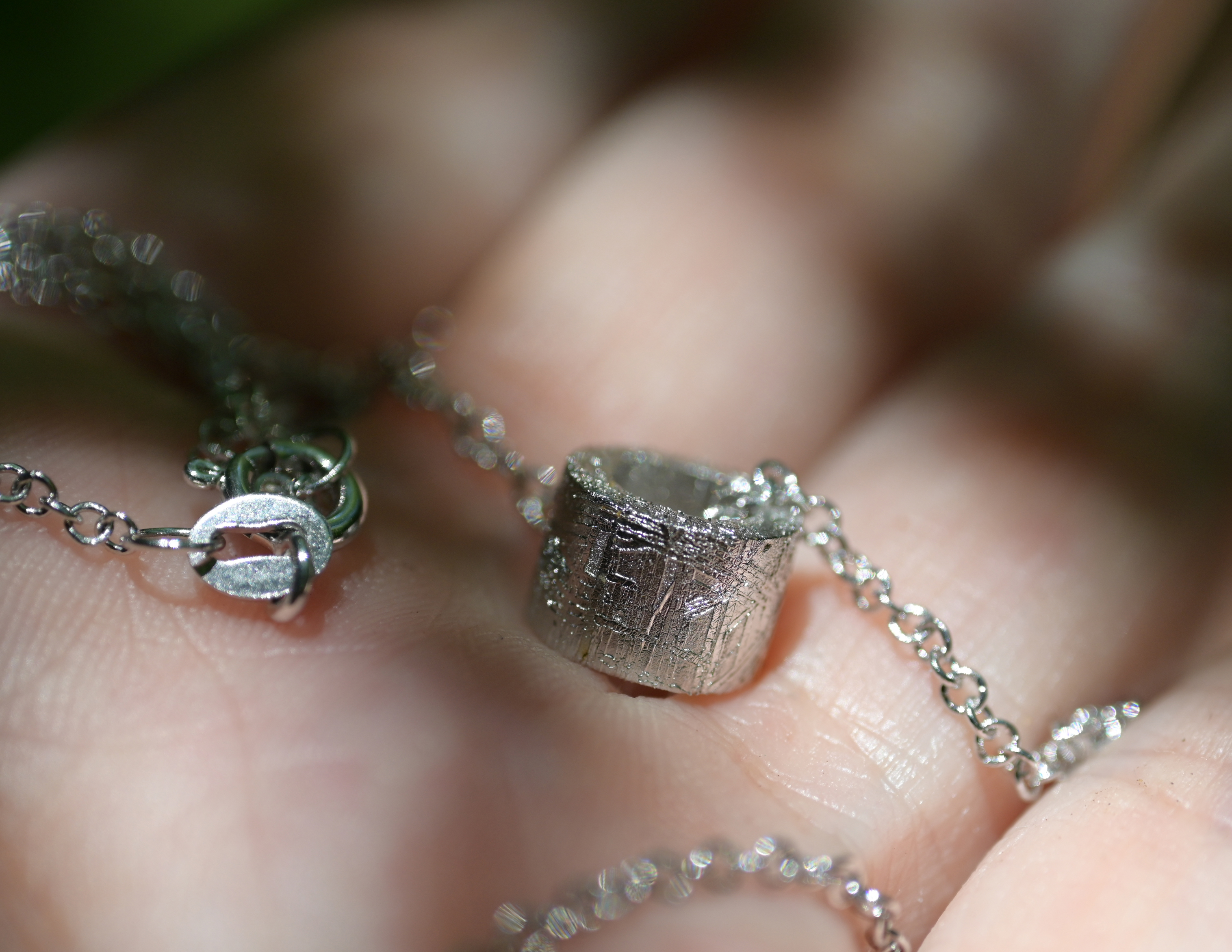 如同人的指紋,每一塊天鐵剖面的紋路都不相同。鎳鐵隕石由鎳和鐵的合金組成,與地球上的鐵一樣會氧化生鏽。因此許多鎳鐵隕石飾品會使用電鍍膜,但鍍膜後較難分辨真偽