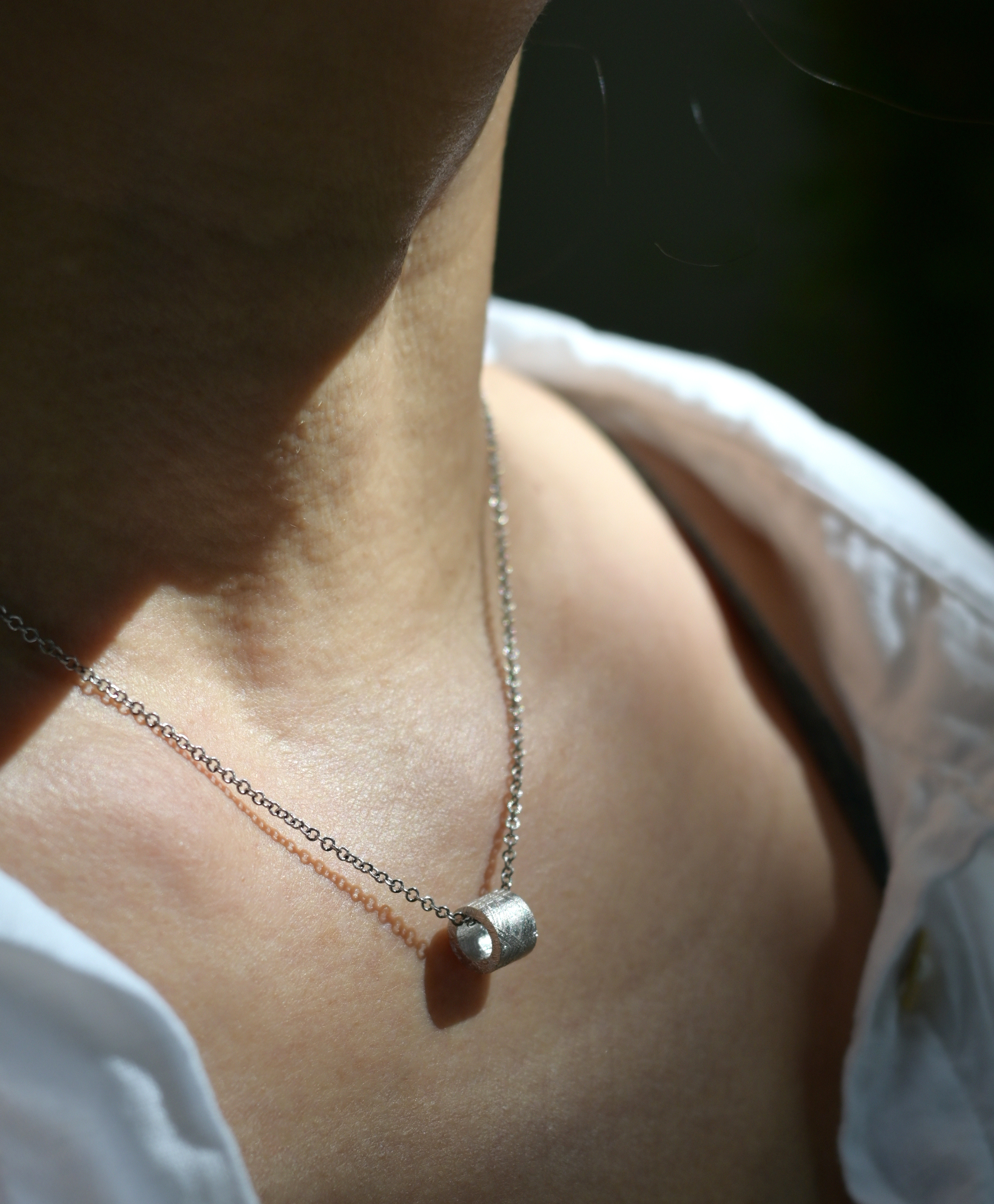 天鐵天孔珠吊墜是由整塊實心天鐵鑽孔而成,呈現簡潔現代的設計風格,無論搭配鈦鋼鍊或各種晶石細鍊都展現出獨特的質感與實用性