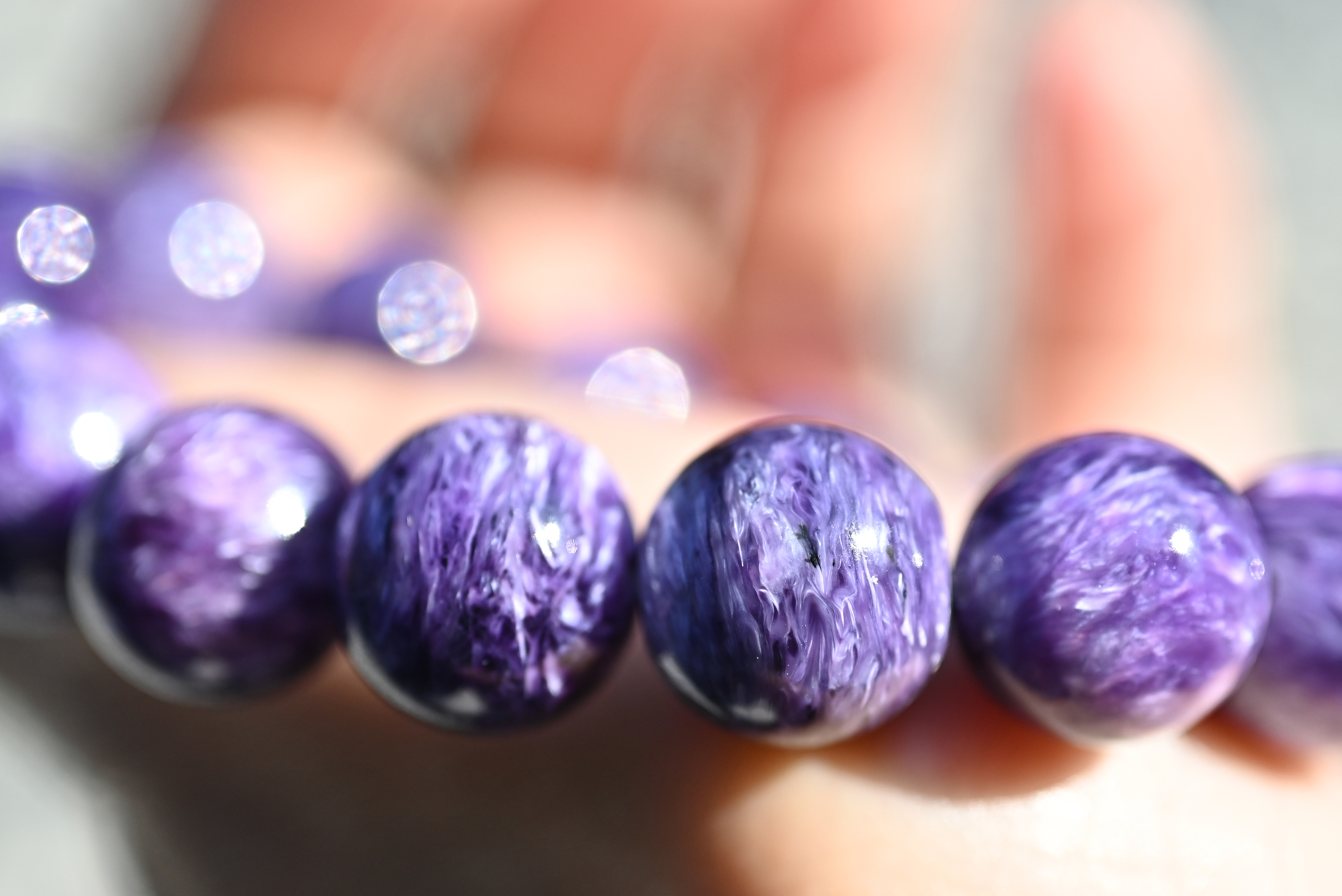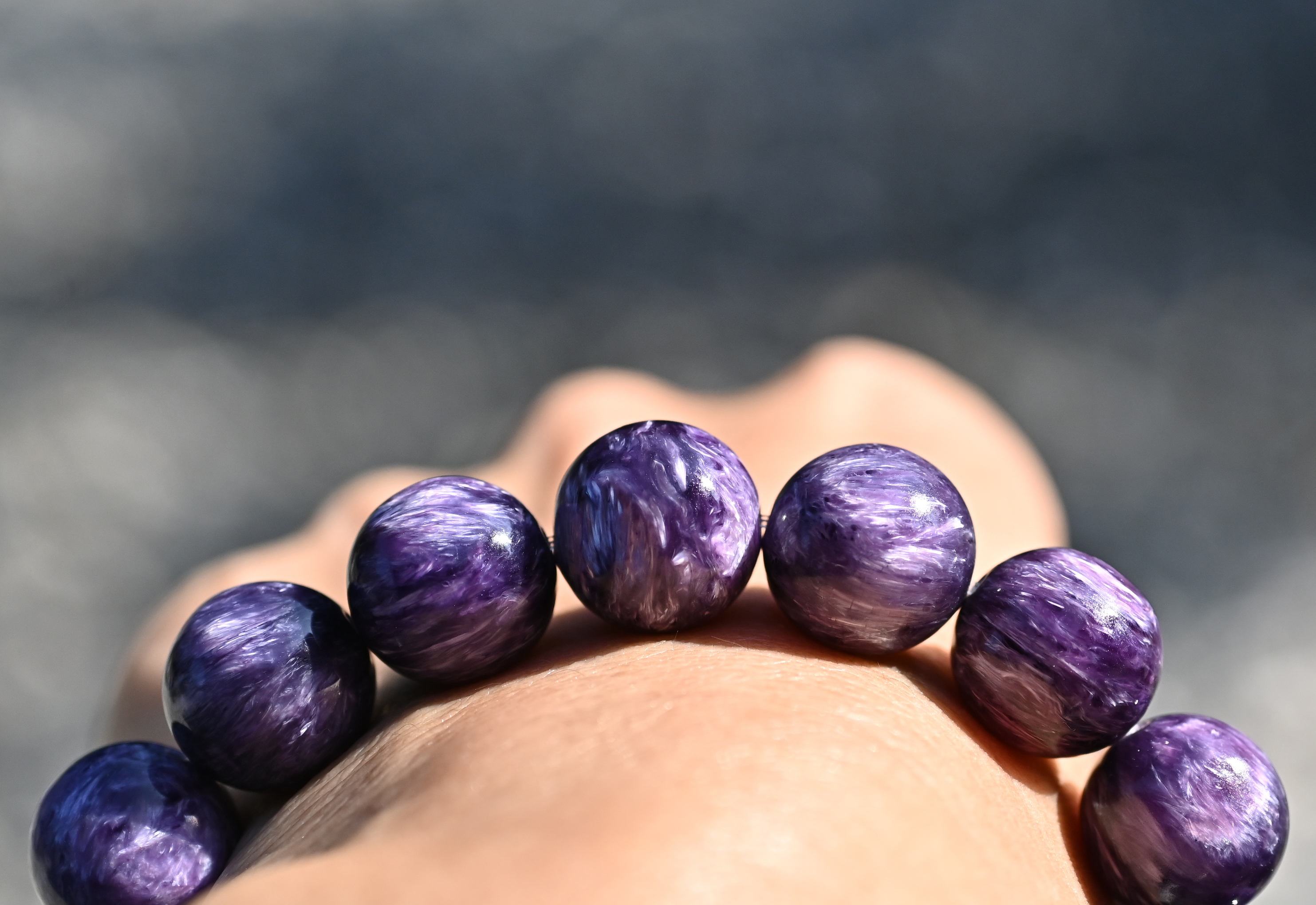 又稱查羅石,是一種極為稀有、辨識度極高的紫色寶石,最早於 1978 年在俄羅斯被發現,以紫與白交織的流動紋理聞名,像雲、像浪,也像正在旋轉的漩渦