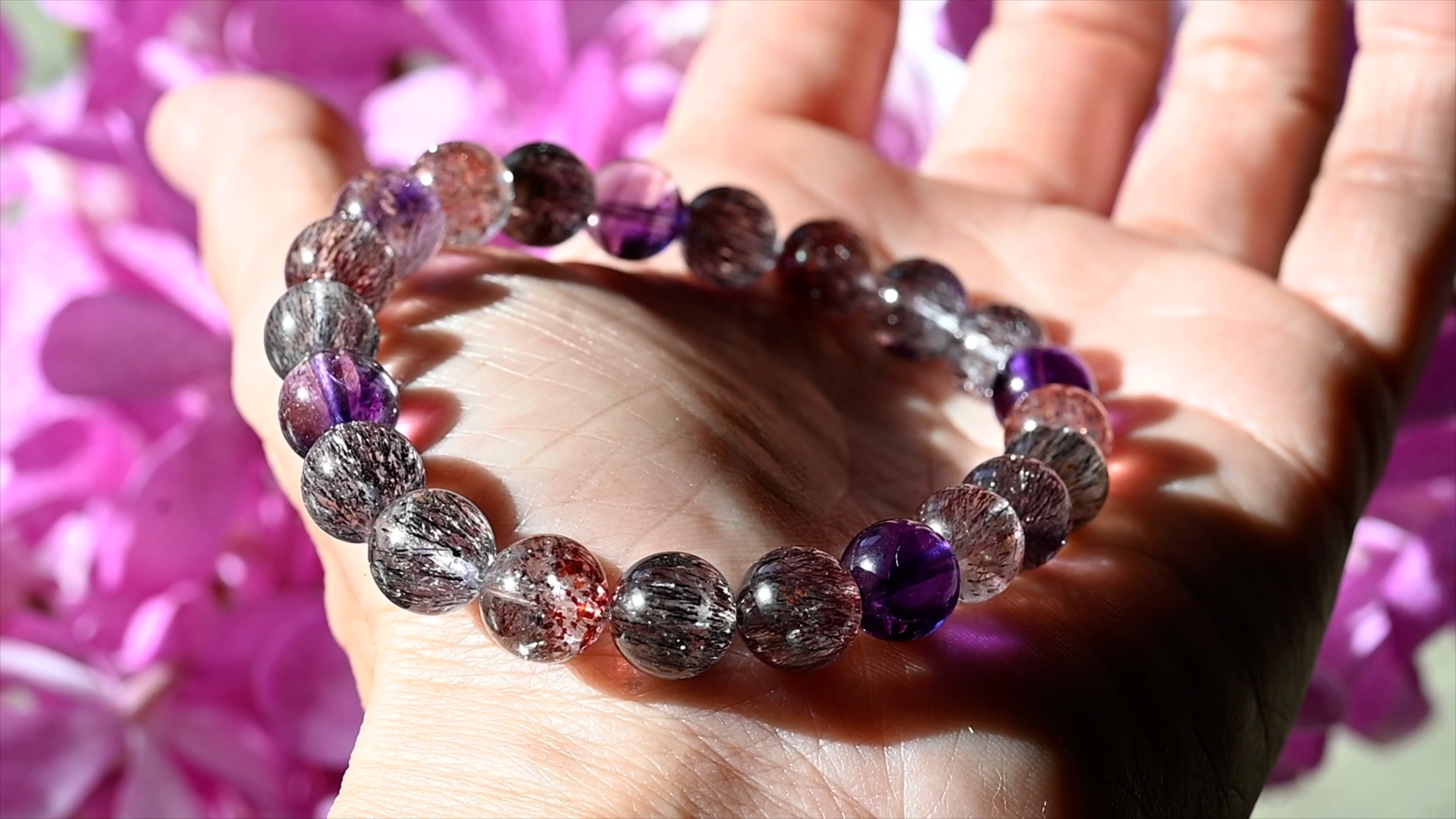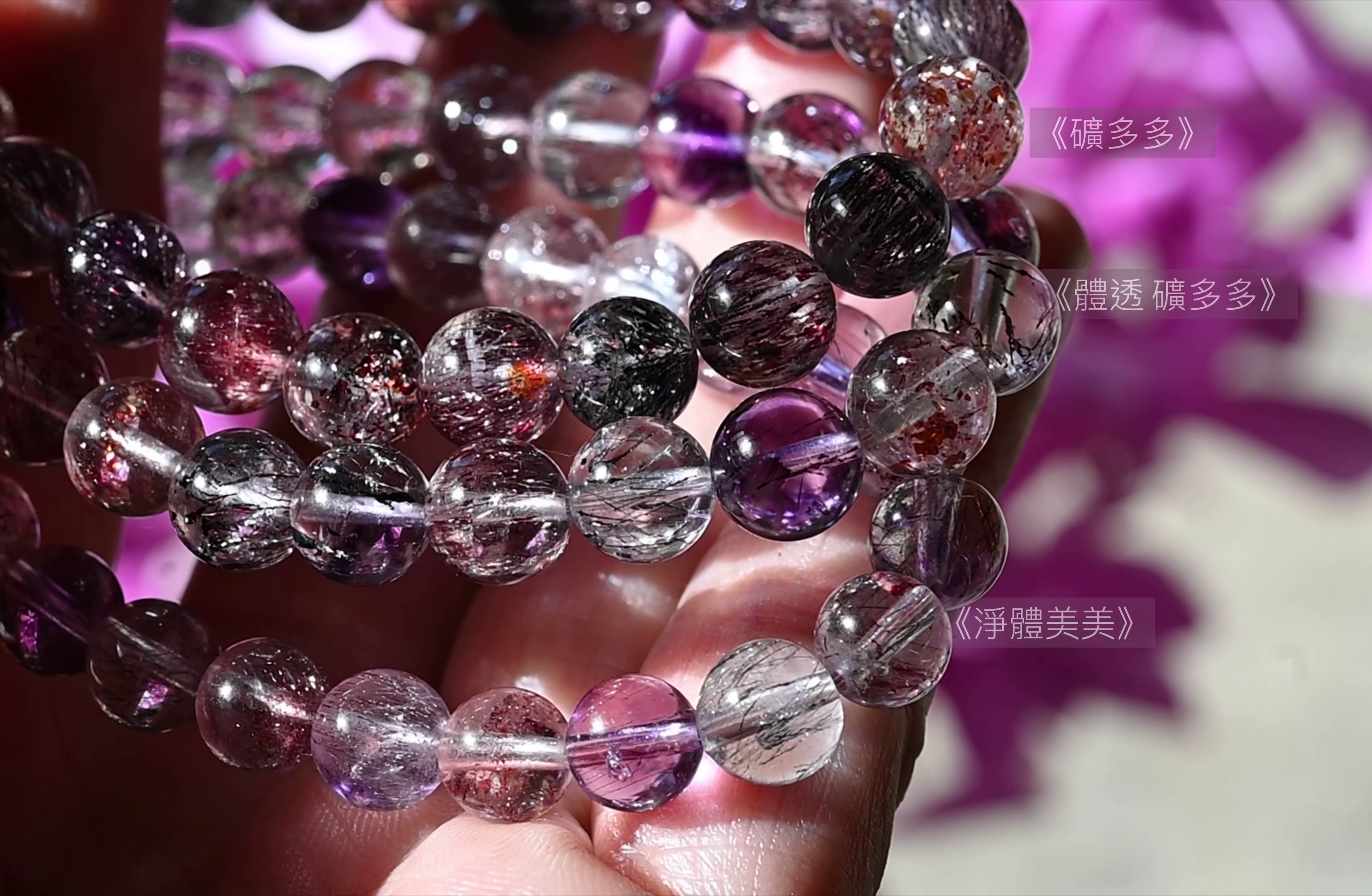 內含7種晶礦能量(紫水晶 白水晶 茶水晶 黃磷鐵礦 金紅石 針鐵礦 纖鐵礦⋯)祂包容整合多種礦物的協同能力,很能幫助我們提升整合內外能量場,進而吸引『同頻共振的人事物』前來生命中互相扶持彼此